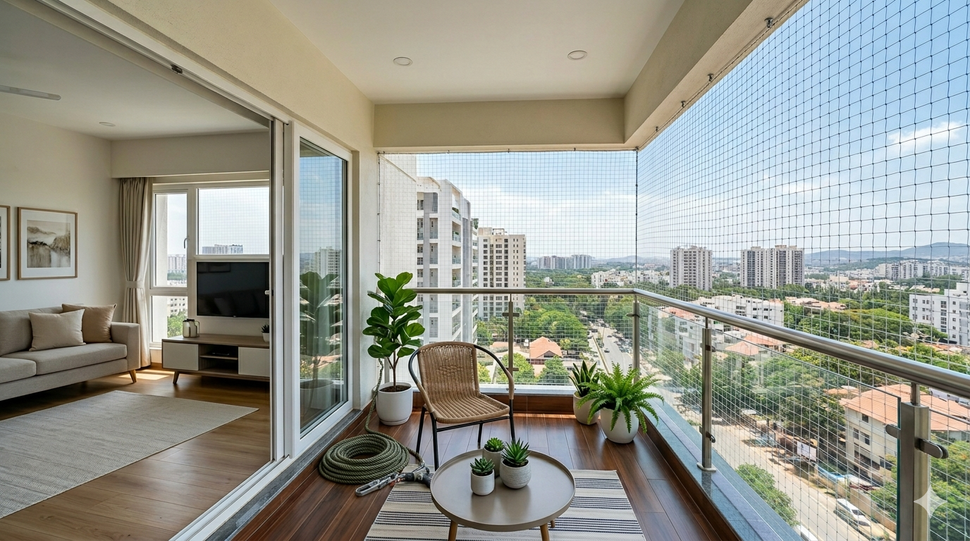 Window safety nets are an affordable, effective way to protect your home from child falls and bird entry without closing your windows. Mom Safety Nets provides custom-fitted window safety net installation for all window types across Bengaluru, maintaining full ventilation and natural light while ensuring safety.